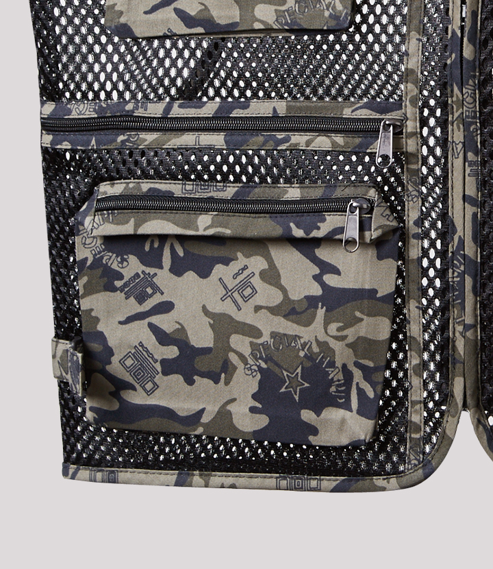 앞판 / 뒷판에 메쉬원단을 사용하여 통기성이 뛰어난 작업용 조끼.